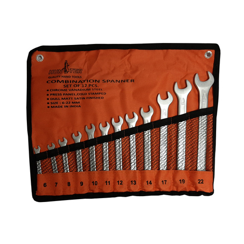 بهترین ابزاردستی که برای بازکردن یا بستن پیچ‌ و مهره‌های شش‌گوش استفاده می‌شود، گونه‌های مختلف آچار، به‌ویژه آچارهای تخت و رینگی است. مجموعه 12عددی آچار هانتر ، شامل تعدادی آچار دوسره است که توسط شرکت (هانتر) به بازار معرفی‌ شد. این مجموعه دارای 12 عددی آچار یک سر تخت و یک سر رینگی در سایزهای 6-7-8-9-10-11-12-13-14-17-19-22 است. برای ساخت آچارهای این محصول از آلیاژ کروم-وانادیوم استفاده‌ شده است. این آلیاژ برای ساخت بسیاری از ابزارهای دستی مورد استفاده قرار می‌گیرد و مقاومت بالایی در برابر ضربه، فشار و حرکات پیچشی و کششی دارد. آچار‌های رینگی با درگیرشدن کامل با پیچ یا مهره، کارایی و عملکرد بهتری نسبت به آچارهای تخت دارند. البته با توجه به محل استفاده از آچار، احتمال دارد که امکان استفاده از آچار رینگی وجود نداشته باشد. از آچار‌های برند یوفتی می‌توان برای بازکردن سایزهای مختلف پیچ و مهره استفاده کنید. یک کیف برزنتی کوچک هم برای اینکه آچار‌های مجموعه را در آن قرار دهید، برای این محصول در نظر گرفته ‌شده است.