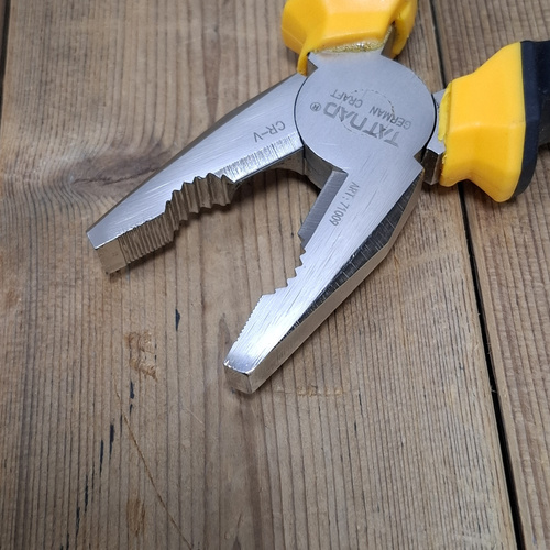 انبردست تاتند مدل ART:71009 به سایز 7اینچ و طول کلی 20 سانتی متر از فولاد بسیار مقاوم و با کیفیتی ساخته شده است.این انبردست 7 اینچی از اهرم تقویت شده و قدرتمندی برخوردار است که آن را برای انواع وظایف از برش تا خم کردن مناسب کرده است.فک این انبردست جهت افزایش مقاومت و کارایی و همچنین مقاومت در برابر هرگونه زنگ زدگی به طور کامل پولیش شده است و تا حداکثر 25 میلیمتر باز میشود.انبردست صنعتی ART:71009 به فکهای دندانهدار و برندهای مجهز شده که آن را برای نگه داشتن، بریدن و خم کردن انواع کابل با سختیهای متفاوت مناسب کرده است.دستههای این انبردست تاتند ، به صورت ارگونومیک به طول 14سانتیمتر طراحی و ساخته شده اند. این دسته ها با پلاستیک ضد تعریق و ضد لغزش روکش شدهاند که باعث افزایش ایمنی کار برای شما میشوند.انبر دست ART:71009 سایز 7 اینچ ، محصولی سبک با 340گرم وزن و ابعاد 20.6.2سانتیمتر است.